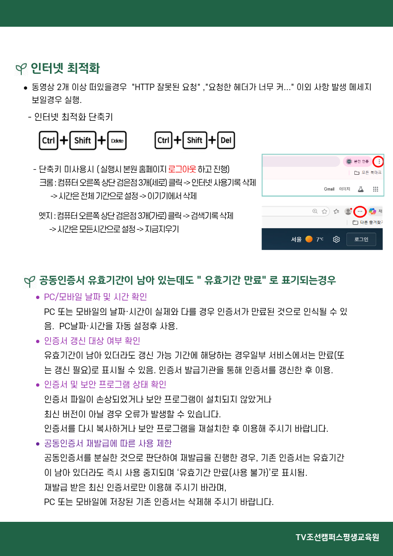 제목 인터넷 최적화 방법 및 공인인증서 설치시 미설치 되는 현상 조치방안 안내