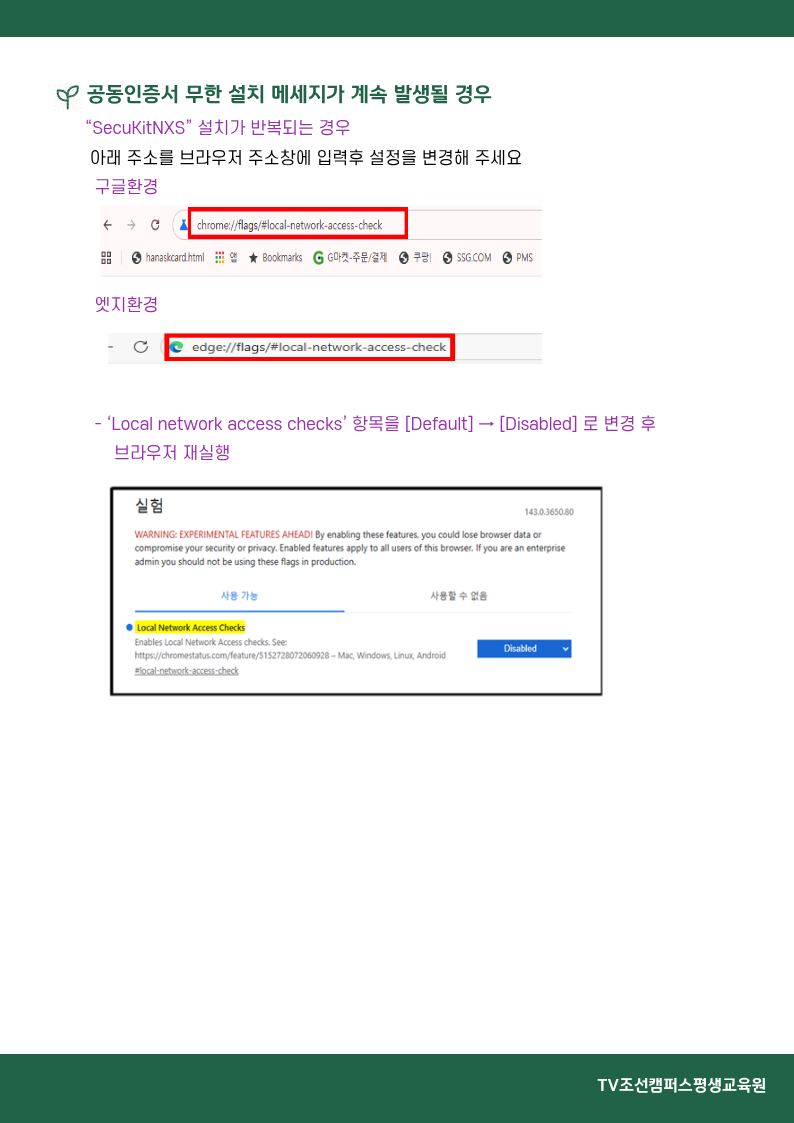* 공동인증서 무한설치 입력창 주소  ( 크롬 / 엣지 동일 하며 맨앞 브라우져 명칭만 변경해서 사용 )